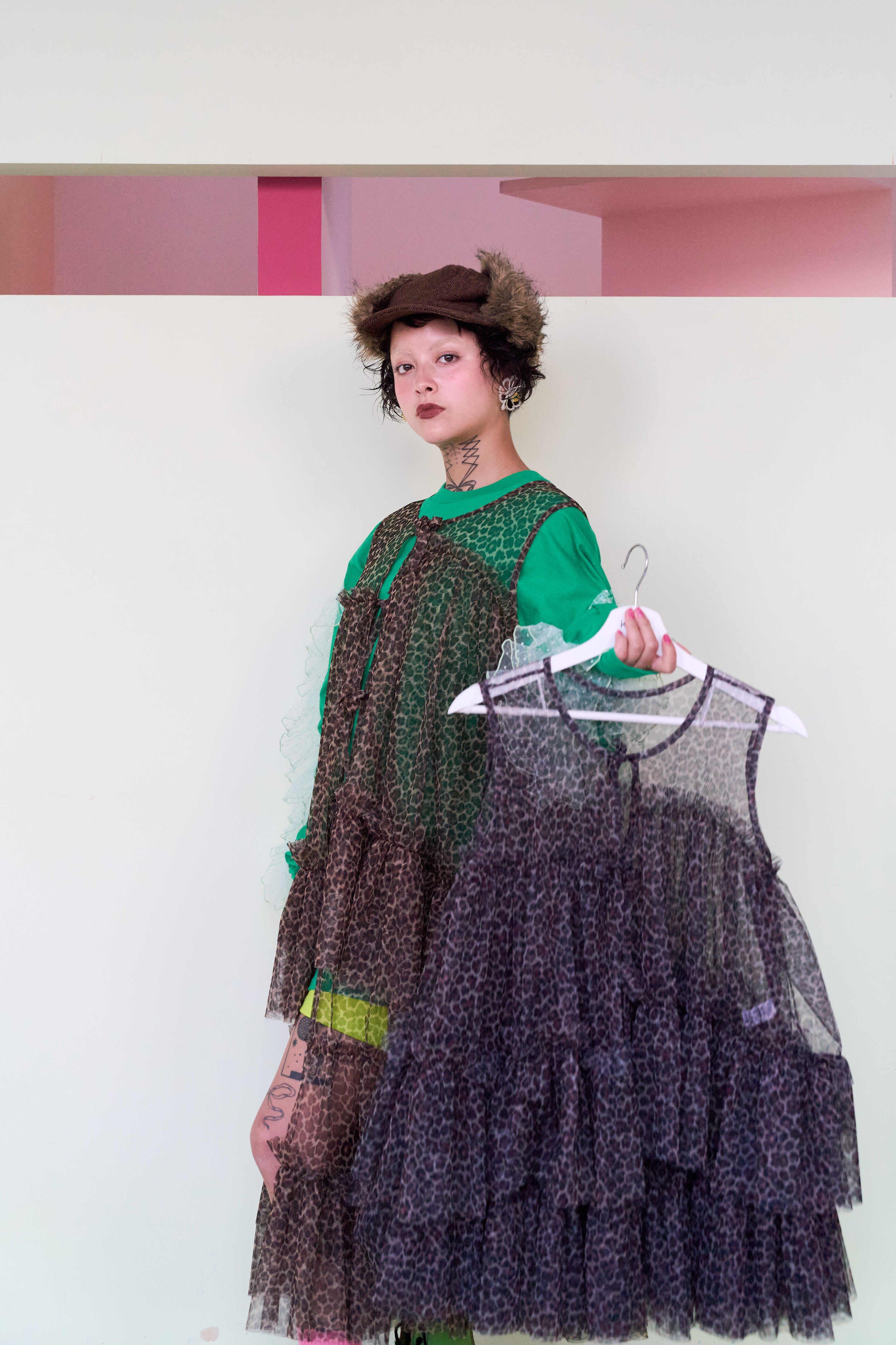 kids tulle vest " pink leopard print "